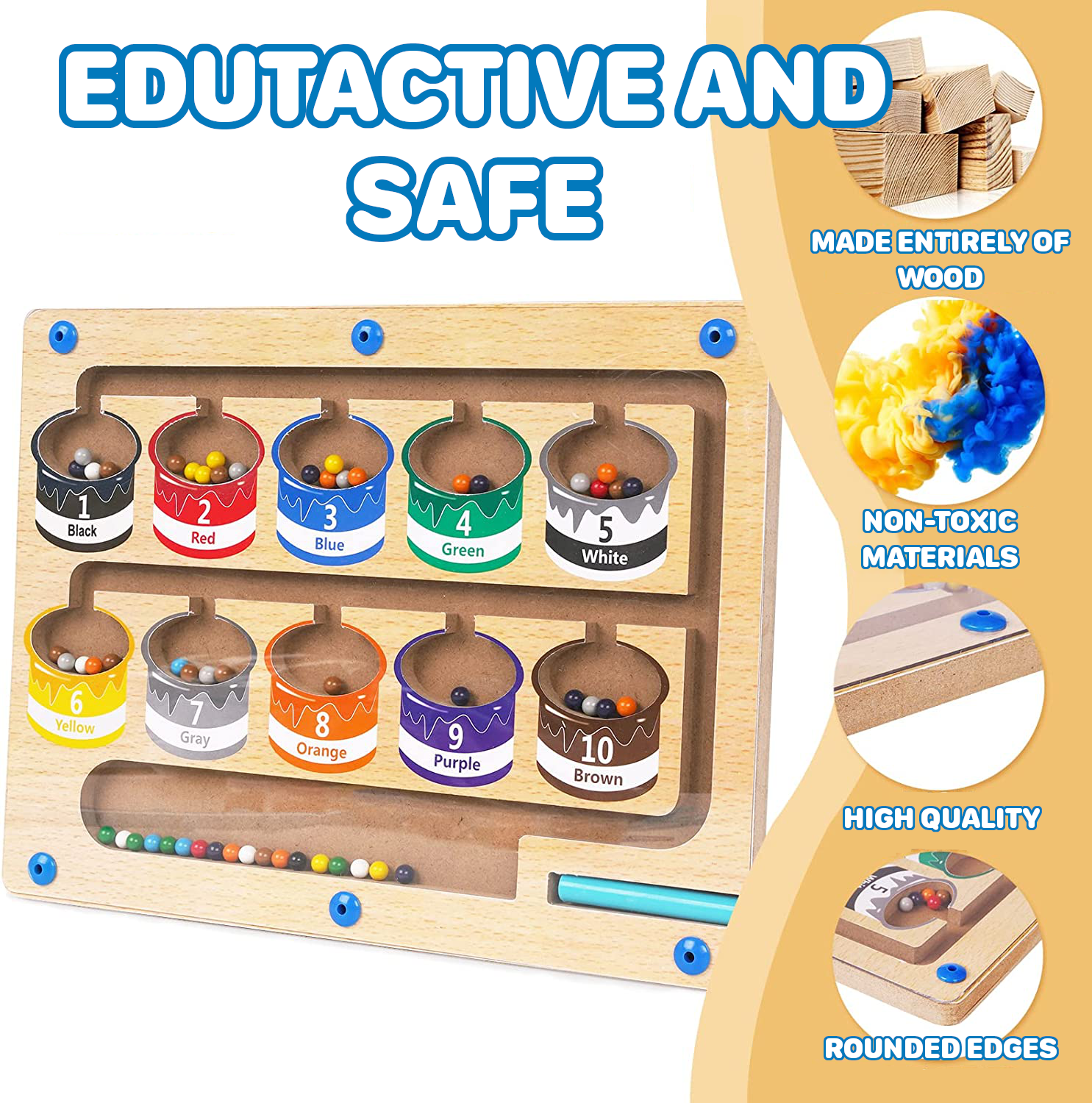 The Labyrinth is one of the most widely used Montessori methods to develop children's hand-eye coordination, LabyColor™ is full of actions to perform, improves hand movement, teaches colors in Italian and English, and teaches counting through spheres!